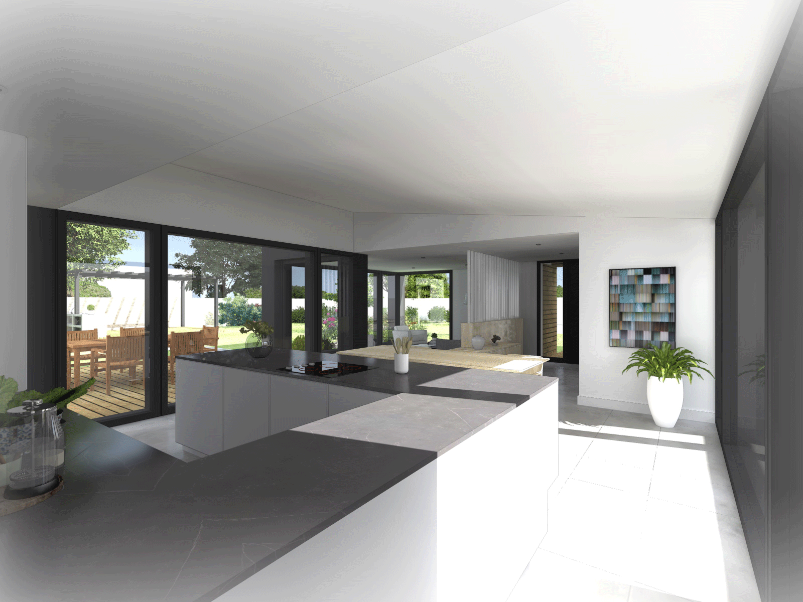 L’orientation des pièces et le jardin paysager se composent suivant un relevé précis réalisé par un expert de la géobiologie afin de maximiser le bien-être de chacun dans la maison.